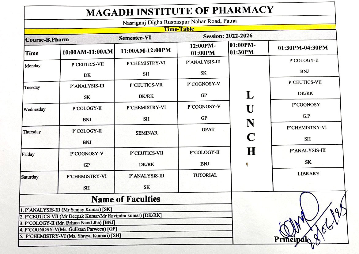For the latest updates and changes, please check the notice board or contact the academic office.